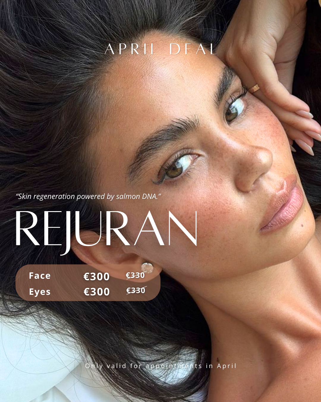 Nieuw bij JECT: Rejuran. Een geavanceerde huidbehandeling op basis van zalm-DNA die de huid herstelt, collageen stimuleert en de huidstructuur van binnenuit verbetert. Klaar voor een nieuwe huid? Boek je afspraak in april en ontvang €30 korting op je Rejuran behandeling.